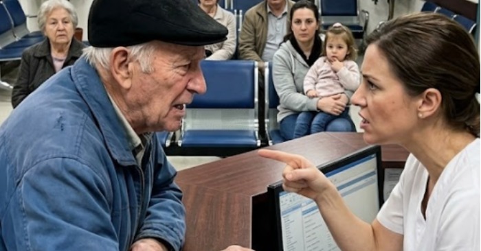 Muž v chirurgickom odeve vystúpil a zložil si rúško. Bol to vedúci lekár. Vyčerpanie ho ťažko doliehalo na plecia, ale jeho pohľad okamžite padol na scénu na recepcii. Nepozrel sa na sestru. Namiesto toho kráčal priamo k starému mužovi.