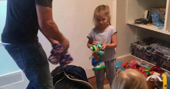 Mia pribehla a zvierala svoju obľúbenú bábiku. Keď uvidela Jakea baliť hračky, oči sa jej rozšírili. „Ocko? Čo to robíš?“