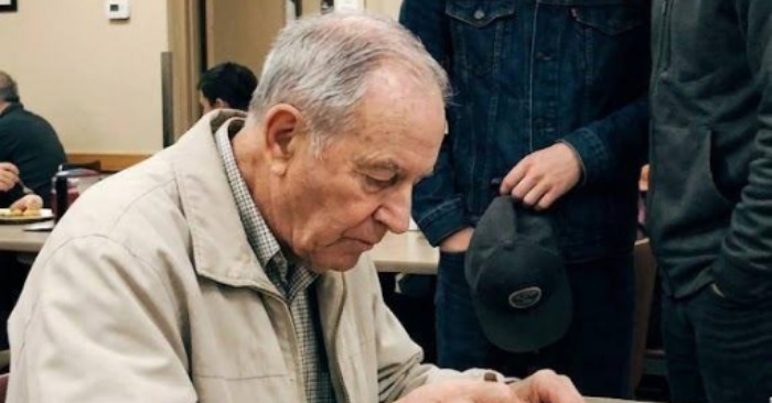 V ďalekom rohu, pri okne, sedel starší muž. Jedol pomaly a opatrne, akoby sa nikam neponáhľal. Ošúchaná bunda, unavená tvár, pokojný pohľad – obyčajný starý muž, ktorému nikto nevenuje zvláštnu pozornosť. Zdal sa byť, akoby ho život už dávno minul.